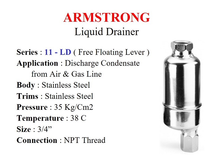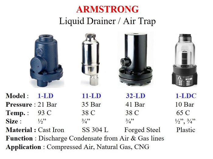 Armstrong manufactures full range of Liquid Drainer used in Gas and Compressed Air.