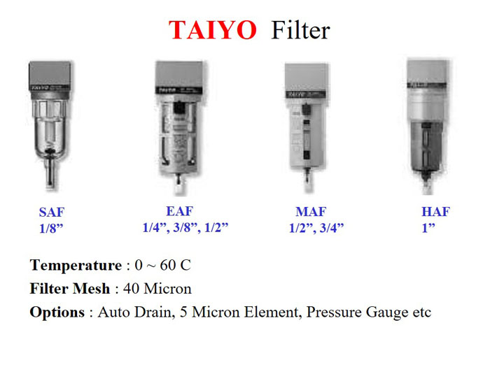 Taiyo SAF, EAF, MAF, HAF series is Filter only. Filter Pneumatik.