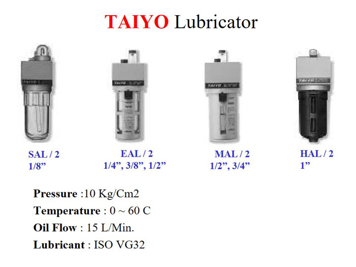 Taiyo SAL/2, EAL/2, MAL/2, HAL/2 series is Lubricator only. Pneumatik Lubrikator untuk Pelicin.