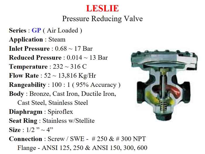 Leslie GP series Air Loaded Pressure Reducing Valve has a wide rangeability as it is Air Loaded instead of Spring.