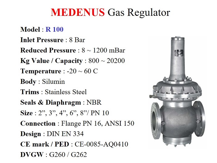 Medenus R 100 series Gas Pressure Regulator is basic Pressure Reducing Valve with 8 Bar inlet pressure.