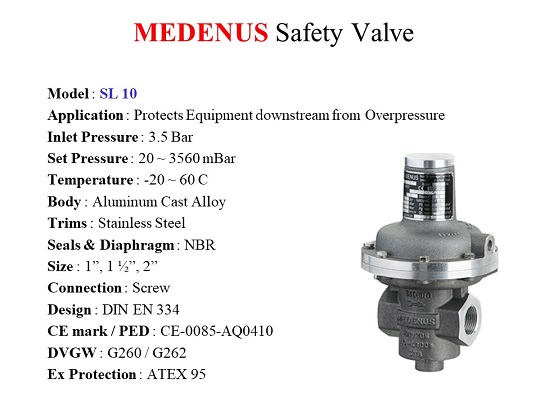 Medenus SL-10 Safety Valve is used to protect against Rising Pressure.