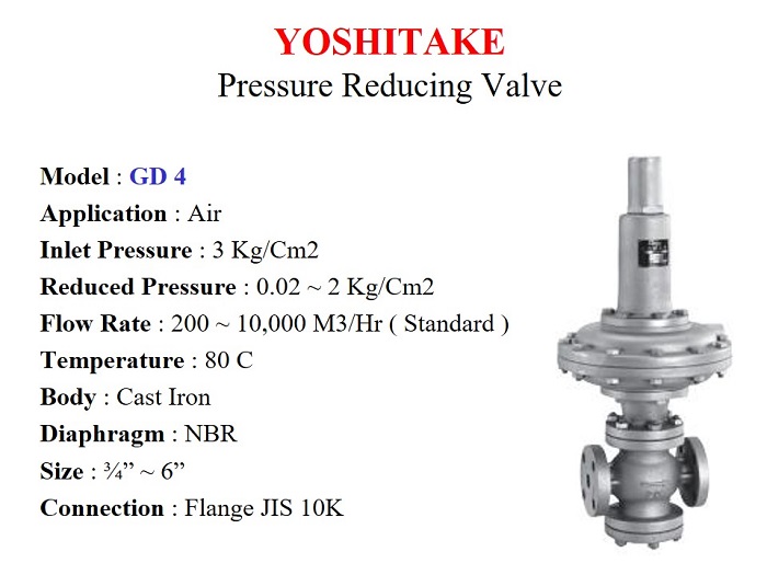 Yoshitake GD-4 is specially designed for Low Pressure Air & Gases ( Non-Combustible ). It is Direct / Diaphragm Operated that offers Accurate and Stable at low pressure Gas flow.