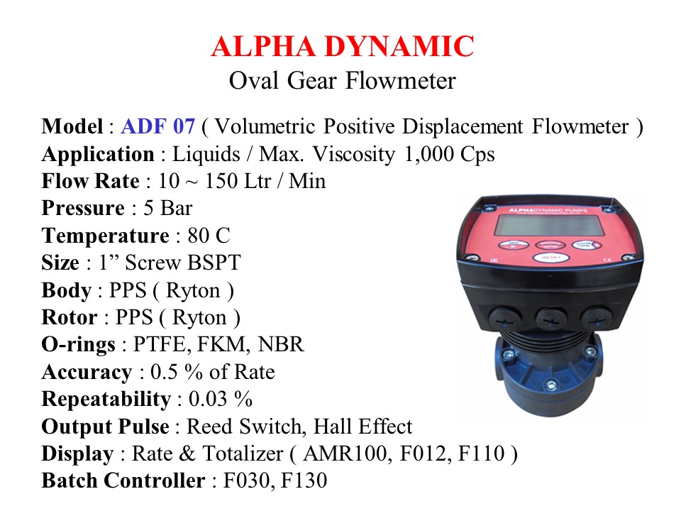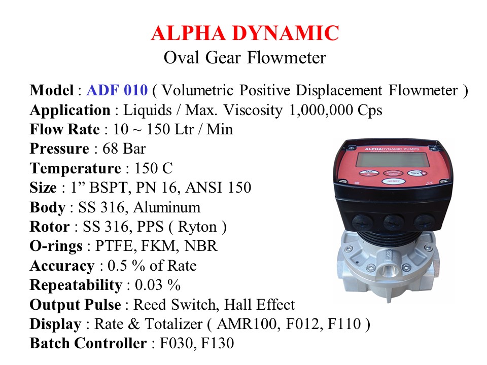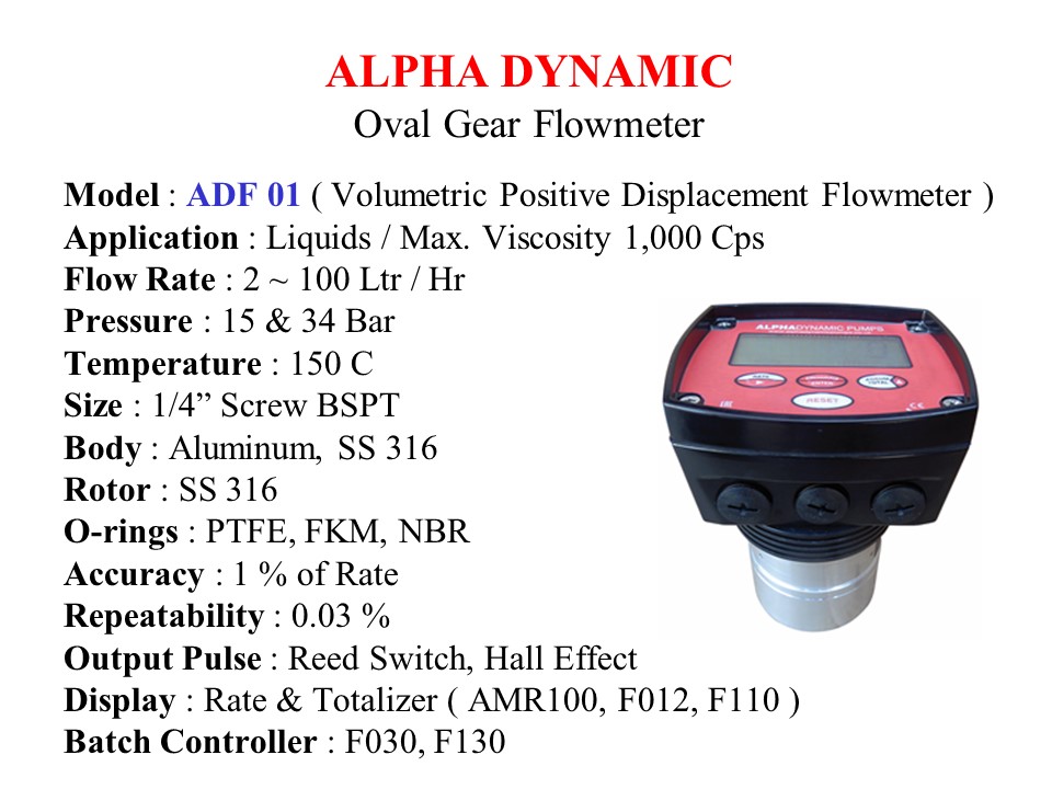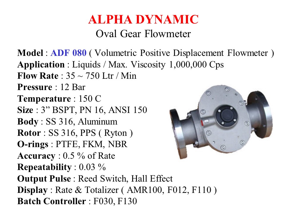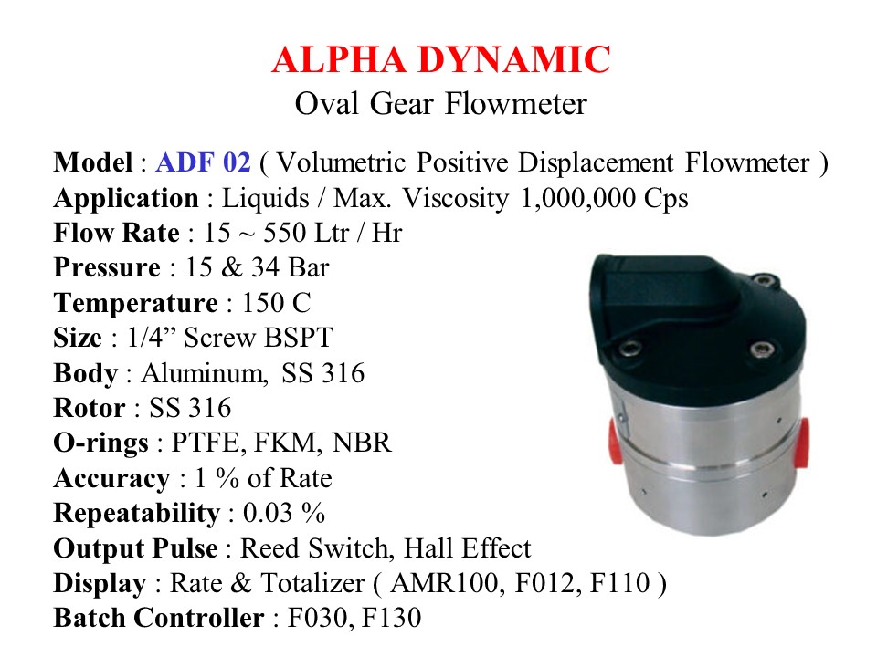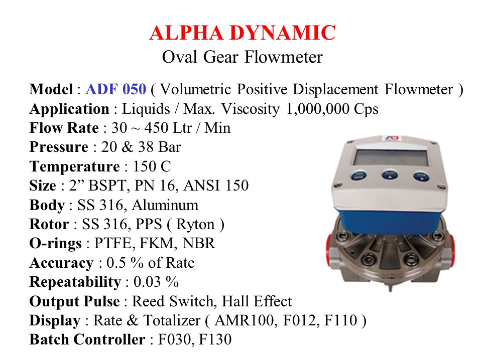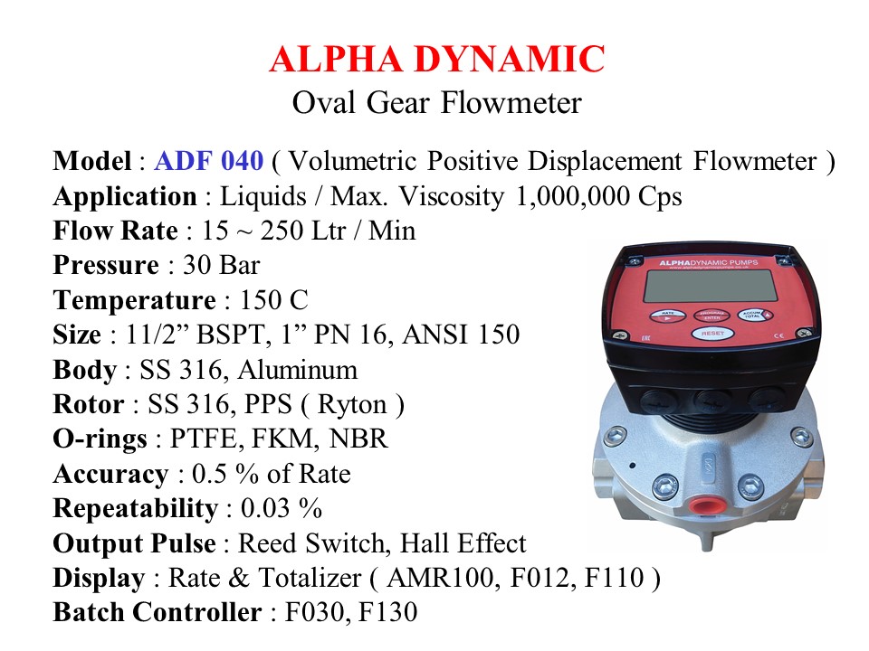 Jual Oval Gear Flowmeter merek Alpha Dynamic dari negara Greek. Cocok untuk Fluida dengan Viskositas tinggi.