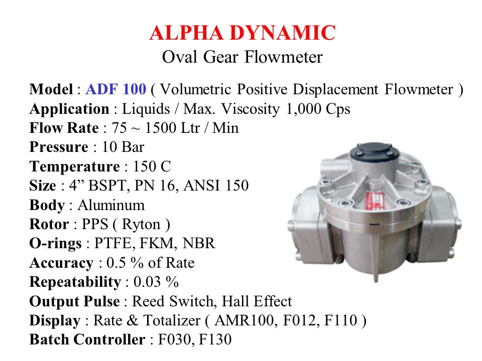 ADF 100 has 4" Screw BSPT or Flange joint PN 16 & ANSI 150. Oval Gear Flowmeter is ideal for High Viscosity fluid. Durable and highly accurate meter.