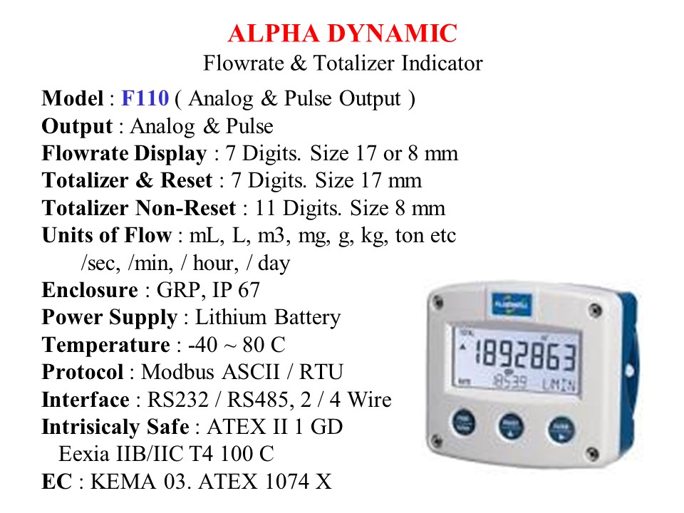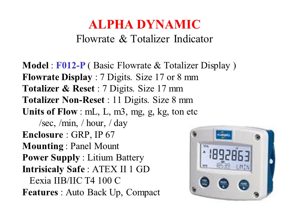 Series F012-P is basic model to display Rate of Flow and Totalizer.