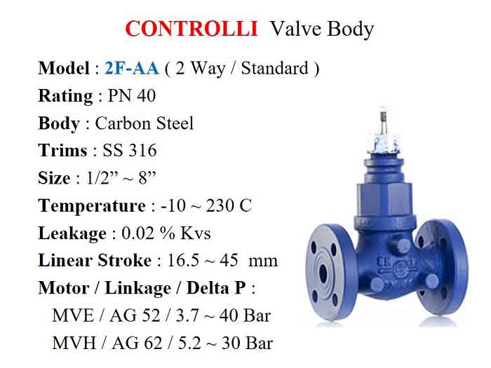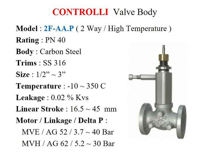 CONTROLLI series 2F-SA 2 Way, PN 25 Valve Body is for higher pressure differential use.