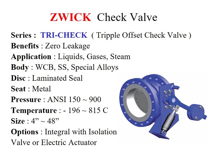 Zwick Tri-Check series is Triple Offset high performance Check Valve to cover High Pressure / Temperature application.