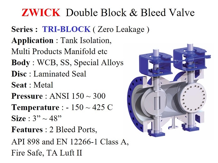 Zwick Tri-Block series Double Block & Bleed Valve is assurance of Zero leak in condition where safety is concerned.