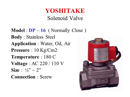 Jual Yoshitake Solenoid Valve series DP-13, Flange connection 10 Bar. Ideal untuk Uap, Air dan Udara.